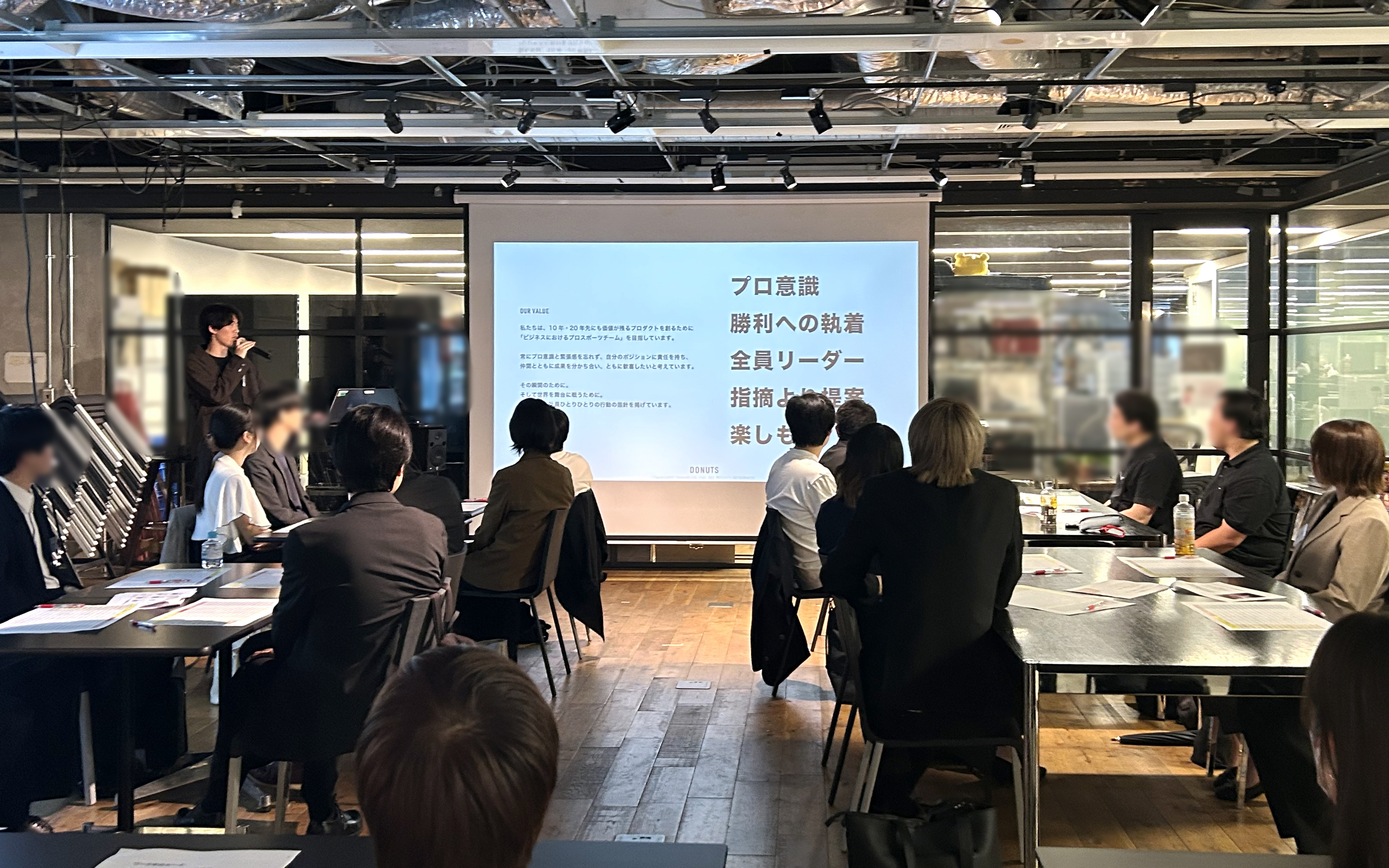 DONUTSでは拠点ごとの採用を行なっているため、東京本社配属の24名と札幌オフィス配属の3名とに分かれ、それぞれのオフィスで内定式を開催する形となりました。