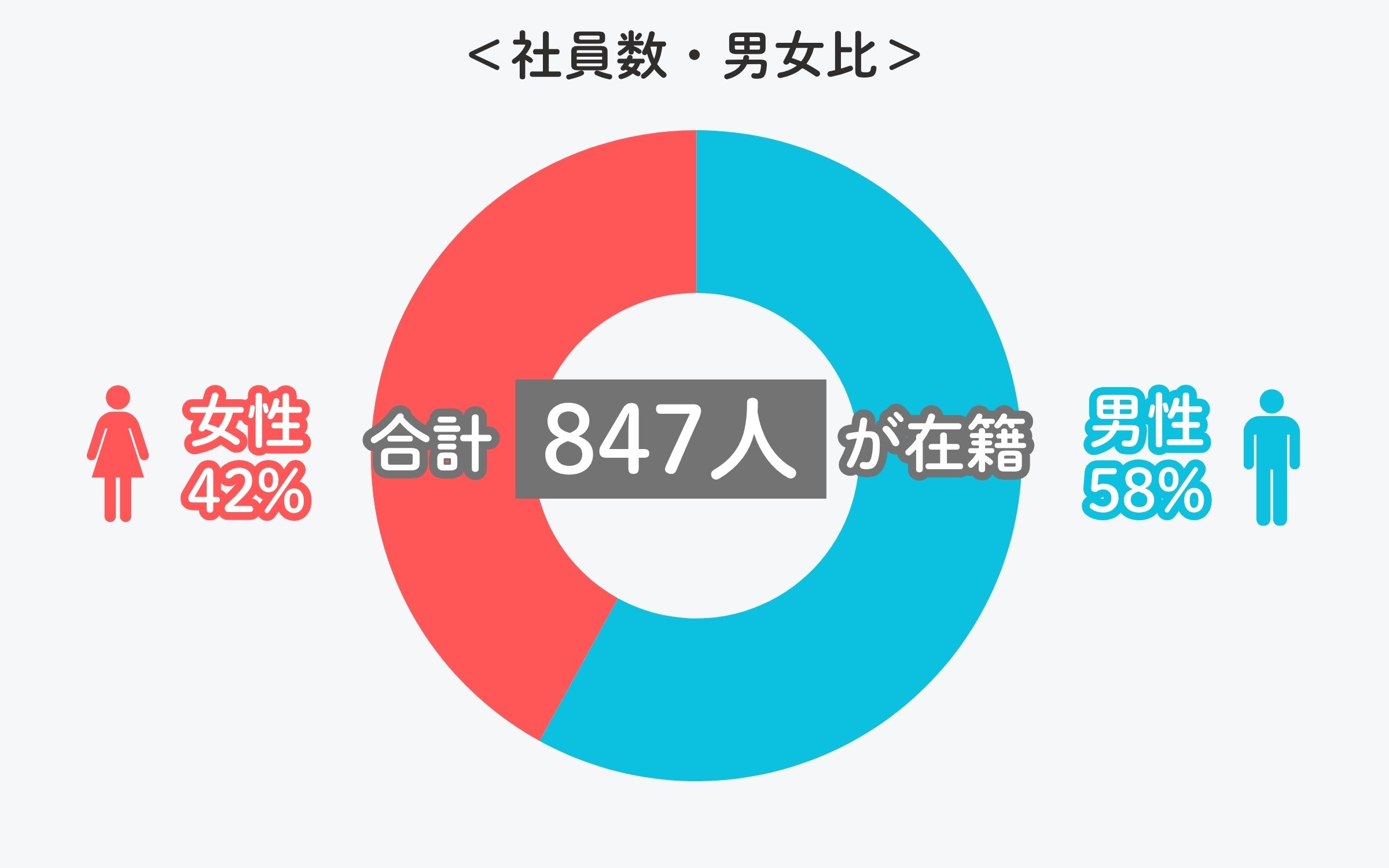 社員数は847人です。男女比は男性58%、女性42%となっています。