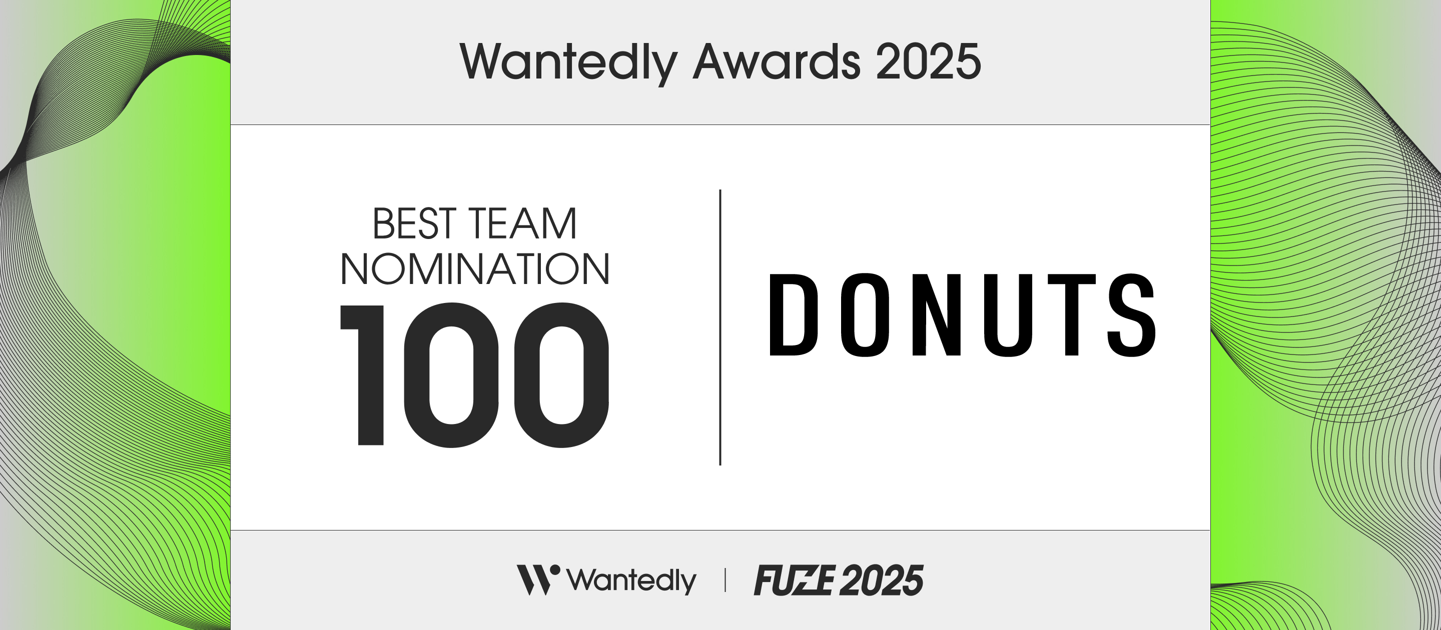その多くの記事がWantedlyのストーリー人気ランキング上位にランクインし、DONUTSは40,000社を超えるWantedly登録企業の頂点を決める「Wantedly Awards 2025」の採用ブランディングや共感採用といった観点で総合的な技術力を称える「BEST TEAM NOMINATION 100(TEAM OF THE YEAR BEST 100)」部門に選出されました。